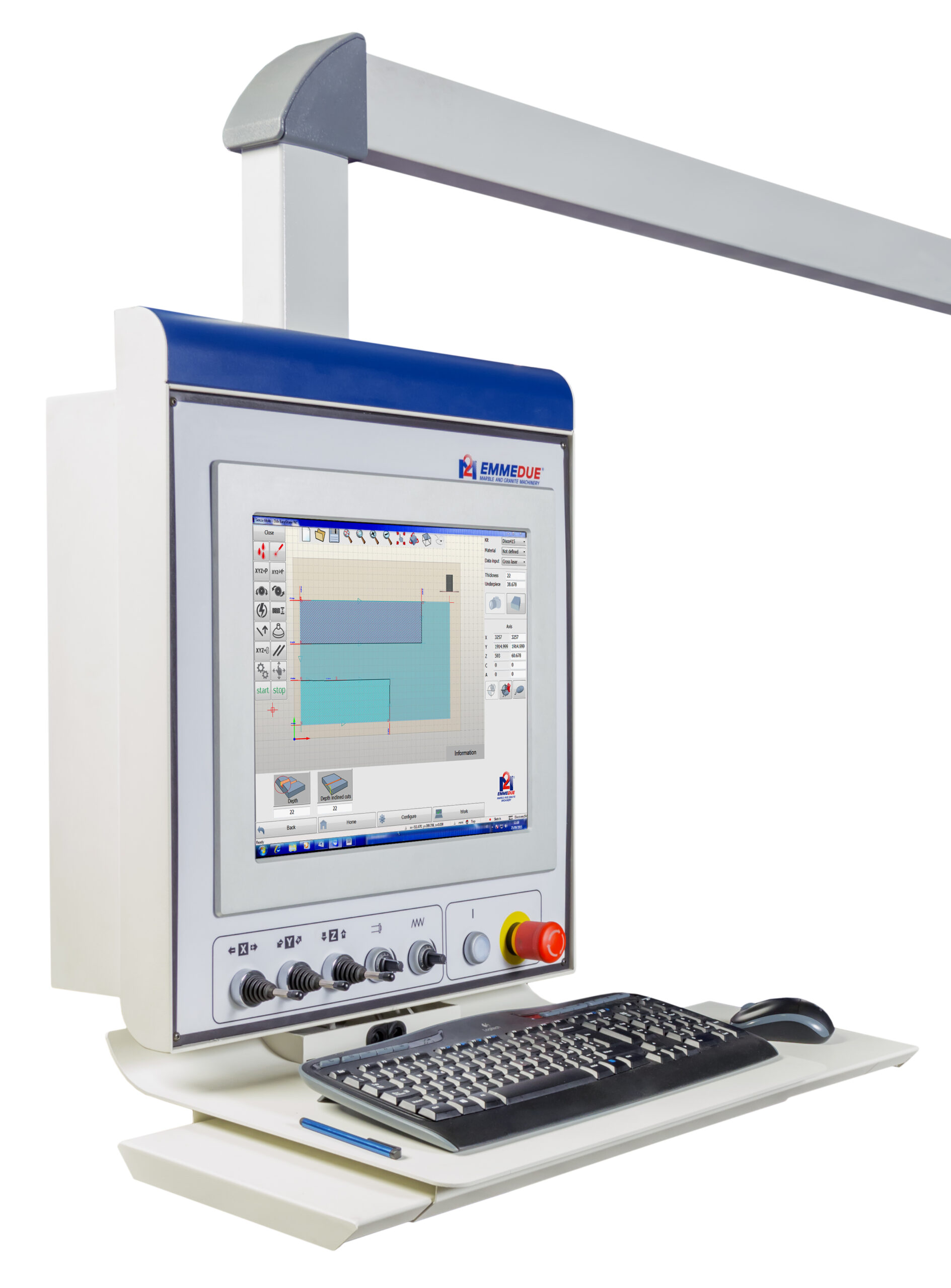 Das Windows-basierte System, das durch eine Maschinensteuerungsplatine integriert ist, ein 17-Zoll-Multi-Touch-Bedienfeld mit innovativer und interaktiver M2 Easy Cad-Schnittstelle, gewährleistet eine einfache und intuitive Ausführung von Verwaltungsvorgängen.