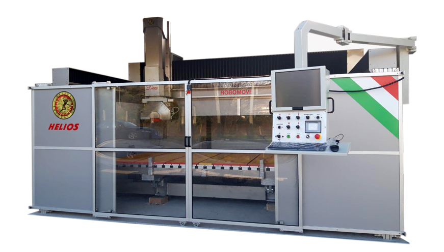 -Helios Dea wird von der Run-touch- und Galaxy Stone-Software verwaltet, die es ermöglichen, die Maschine wie eine Brückensäge oder ein Bearbeitungszentrum zu verwenden
